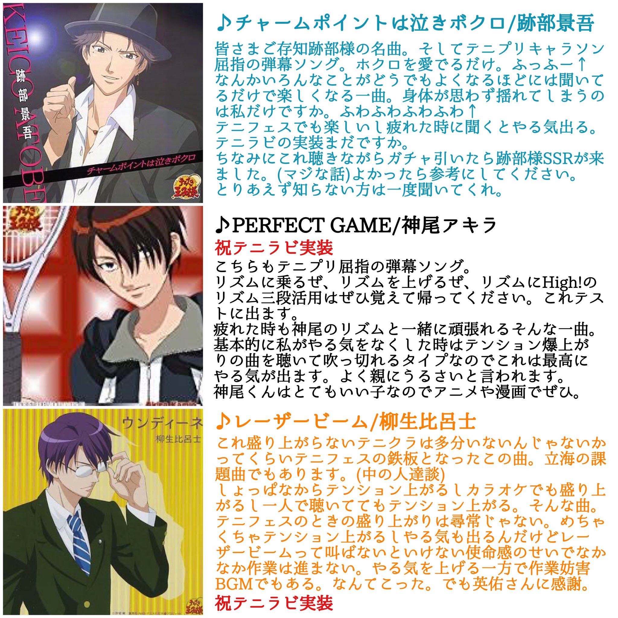 りょむ 最近流行ってるオススメするやつ 勉強が鬱で仕方なかったので超個人的な元気が出る テンション上がる テニプリキャラソンを厳選してみました テニプリキャラソンは どれも よいぞ 800タイトルくらいあるけど